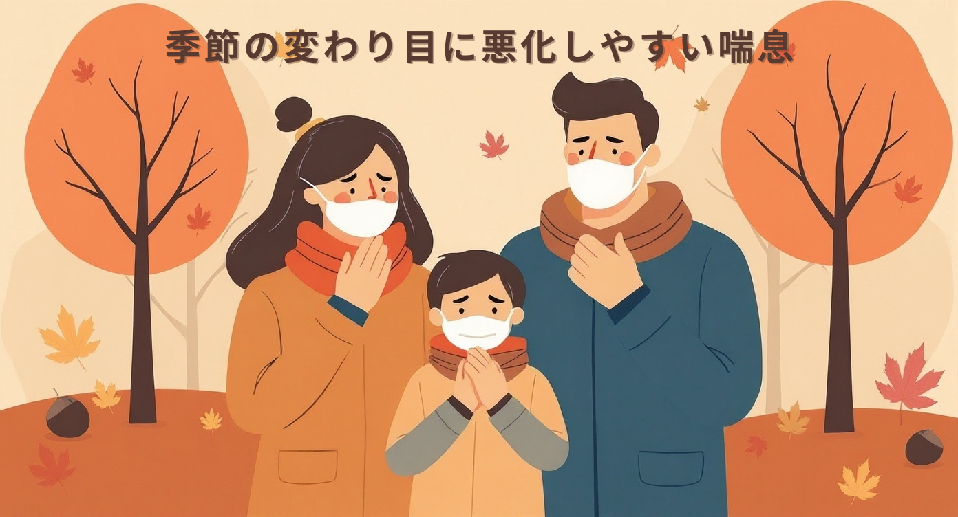季節の変わり目は、気温差・乾燥・アレルギー・感染症などが重なり、喘息が悪化しやすい時期です。
